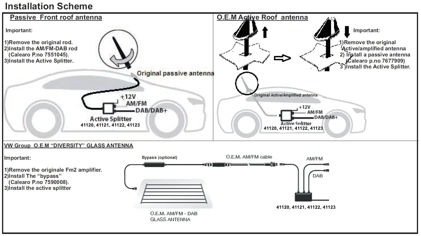 Funktioniert auch mit Aktiv FM/UKW Antennen, wenn die Antenne selbst nicht das Frequenzband filtert. Im Lieferumfang sind dafür folgende Adapterkabel enthalten: