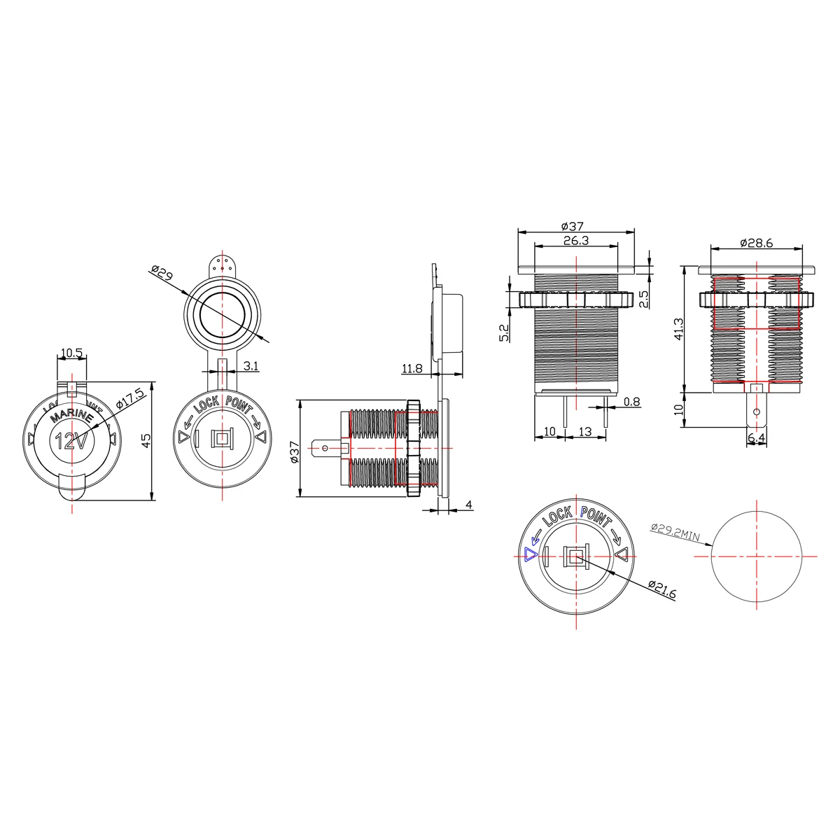 - AMPIRE Auto-Zigaretten-Anzünder-Stecker, schraubbar, 16A belastbar
