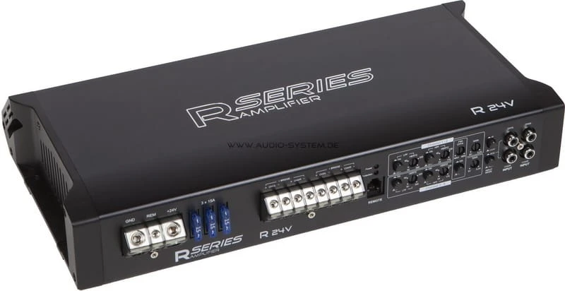 Spezial LKW Endstufe, 4-Kanal Class A/B Hochleistungs-Verstärker mit SMD Technologie variable, schaltbare HP, LP und BP Filter, effiziente Lüfterkühlung on Top, Subsonicfilter, Kabelfernbedienung RTC (optional), FSA (Front-Stage Adjuster), Cinch-Hochpegeleingang mit automatischem Einschalten