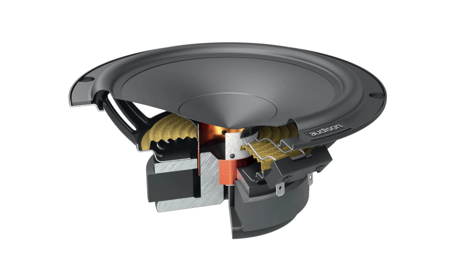 Die AP 6.5P-Tieftönerkomponente wurde entwickelt, um in OEM-Platzierungen ihre beste Leistung zu erbringen, und kombiniert hervorragende Belastbarkeit und Effizienz mit einem sehr weiten Hub, um die wichtigsten dynamischen Spitzen ohne Kompression zu bewältigen. Sein beeindruckender Magnetaufbau liefert die nötige Energie für perfekte Kontrolle auch bei Grenzüberschreitungen. Die CCAW-Schwingspule (Copper-Clad Aluminium Wire) (32 x 14 mm, 1,25 x 0,55 Zoll) verwaltet die größere angelegte Leistung optimal. Der Korb wurde mit Hilfe von Simulationen komplett neu gestaltet , um den Widerstand der Luftströmungen zu verringern und gleichzeitig kompakte Abmessungen beizubehalten, um die Installation zu erleichtern.
