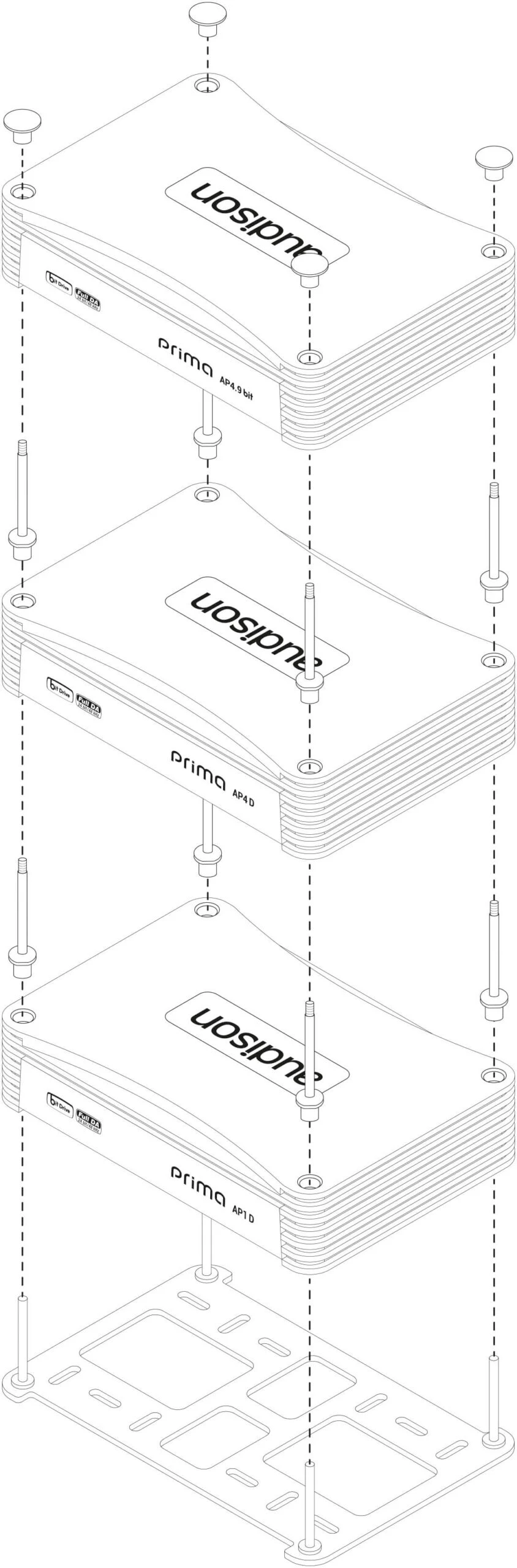 Audison Prima Towerkit zur einfachen Montage der Prima AP Verstärker. Es können damit 3 Verstärker übereinander gestapelt werden.