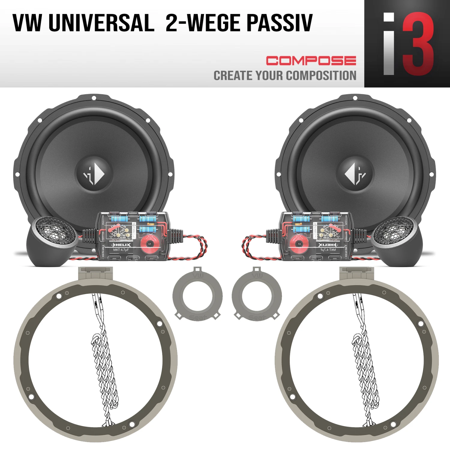 Helix Compose 2-Wege passiv System für viele VW mit werksseitigen 16cm Frontsystem