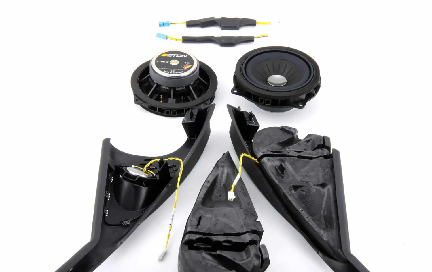 Das System nutzt eine 25 mm Gewebekalotte mit Neodymantrieb. Dazu kommt ein 10 cm High End Mitteltöner mit akustisch optimierter getränkter Papiermembran, der – exakt abgestimmt auf den BMW F20 angeboten wird. Dies garantiert absolute Passgenauigkeit in die werkseitigen Einbauorte des BMW 1er – selbstverständlich unter Beibehaltung der Original-Optik.