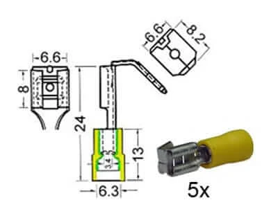 Flachsteckhülsen isoliert mit Abzweiger w6,3mm + m6,3mm gelb
