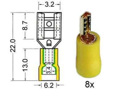 Flachsteckhülsen isoliert und vergoldet Ø 2,8mm, gelb