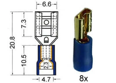 Flachsteckhülsen isoliert und vergoldet Ø 6,3mm, blau