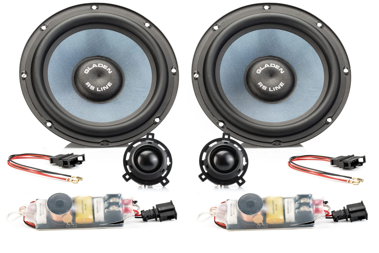 Das Gladen One 165 Golf 7-RS setzt auf die hervorragenden technischen Eigenschaften der RS Chassis mit Ferrit-Magneten und Fasermembranen. Die Lautsprecher lassen sich durch die fahrzeugspezifischen Steckverbindungen und den passgenauen Lautsprecheraufnahmen sehr einfach in Ihren VW Golf 7 montieren. Und das alles absolut zerstörungsfrei. Die Fasermembranen verfügen über eine hohe innere Dämpfung. Der Hochtöner besitzt eine fahrzeugspezifische Dreipunktaufnahme und wird somit unsichtbar hinter der A-Säulenverkleidung montiert. Die fahrzeugoptimierte Frequenzweiche ist optimal auf die Gegebenheiten des VW Golf 7 abgestimmt.