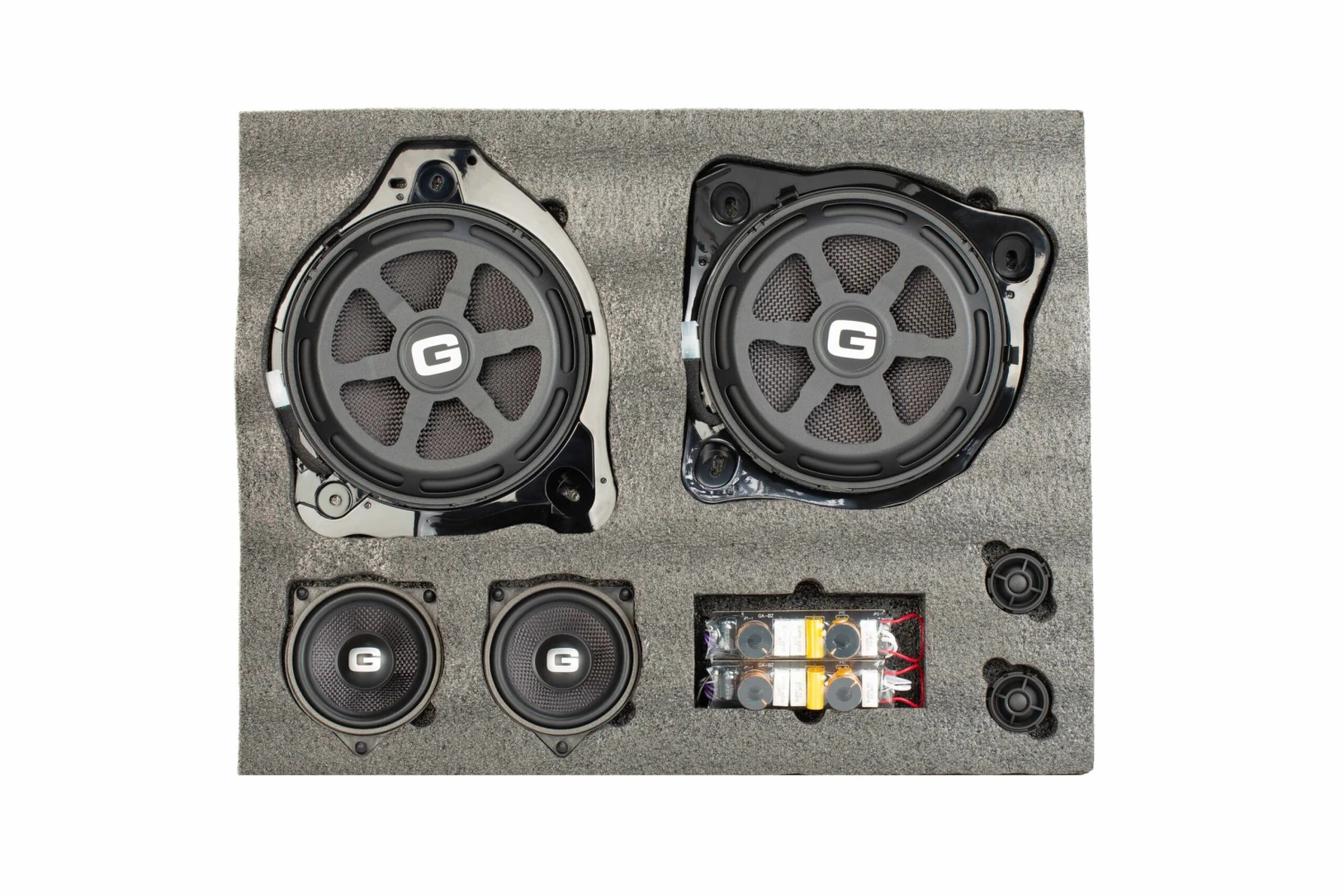 20 cm (8″) fahrzeugspezifisches Plug & Play 3-Wege teilaktiv System für Mercedes C / E / GLC und ähnliche. Erhältlich für Links- und Rechtslenker-Fahrzeuge