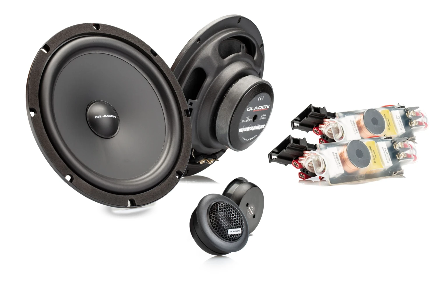 Das Gladen One 200 T5-G3 setzt auf die hervorragenden technischen Eigenschaften der von uns neu entwickelten Chassis mit Ferrit-Magneten. Die Lautsprecher lassen sich durch die fahrzeugspezifischen Steckverbindungen und den passgenauen Lautsprecheraufnahmen sehr einfach in Ihren VW T5 montieren. Und das alles absolut zerstörungsfrei. Die neuen beschichteten Papiermembranen sind steifer und verfügen über eine bessere innere Dämpfung. Der Hochtöner besitzt eine fahrzeugspezifische Dreipunktaufnahme und wird somit unsichtbar hinter der A-Säulenverkleidung montiert. Die fahrzeugoptimierte Frequenzweiche ist optimal auf die Gegebenheiten des VW T5 abgestimmt.