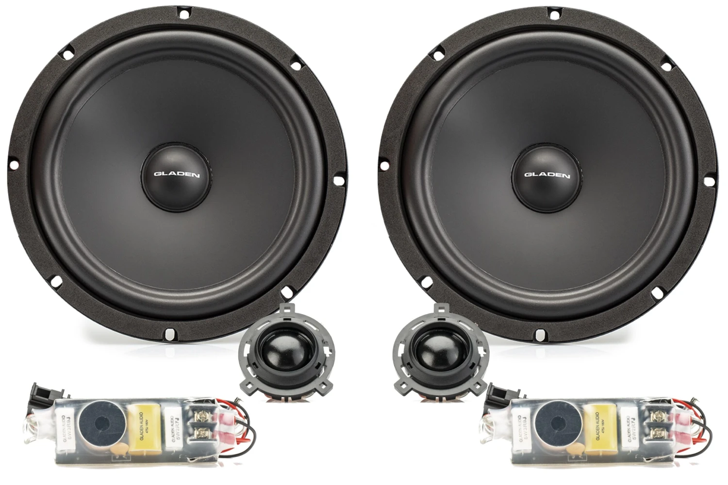 Das Gladen One 200 T6-G3 setzt auf die hervorragenden technischen Eigenschaften der von uns neu entwickelten Chassis mit Neodym-Magneten. Die Lautsprecher lassen sich durch die fahrzeugspezifischen Steckverbindungen und den passgenauen Lautsprecheraufnahmen sehr einfach in Ihren VW T6 montieren. Und das alles absolut zerstörungsfrei. Die neuen beschichteten Papiermembranen sind steifer und verfügen über eine bessere innere Dämpfung. Der Hochtöner besitzt eine fahrzeugspezifische Dreipunktaufnahme und wird somit unsichtbar hinter der A-Säulenverkleidung montiert. Die fahrzeugoptimierte Frequenzweiche ist optimal auf die Gegebenheiten des VW T6 abgestimmt.