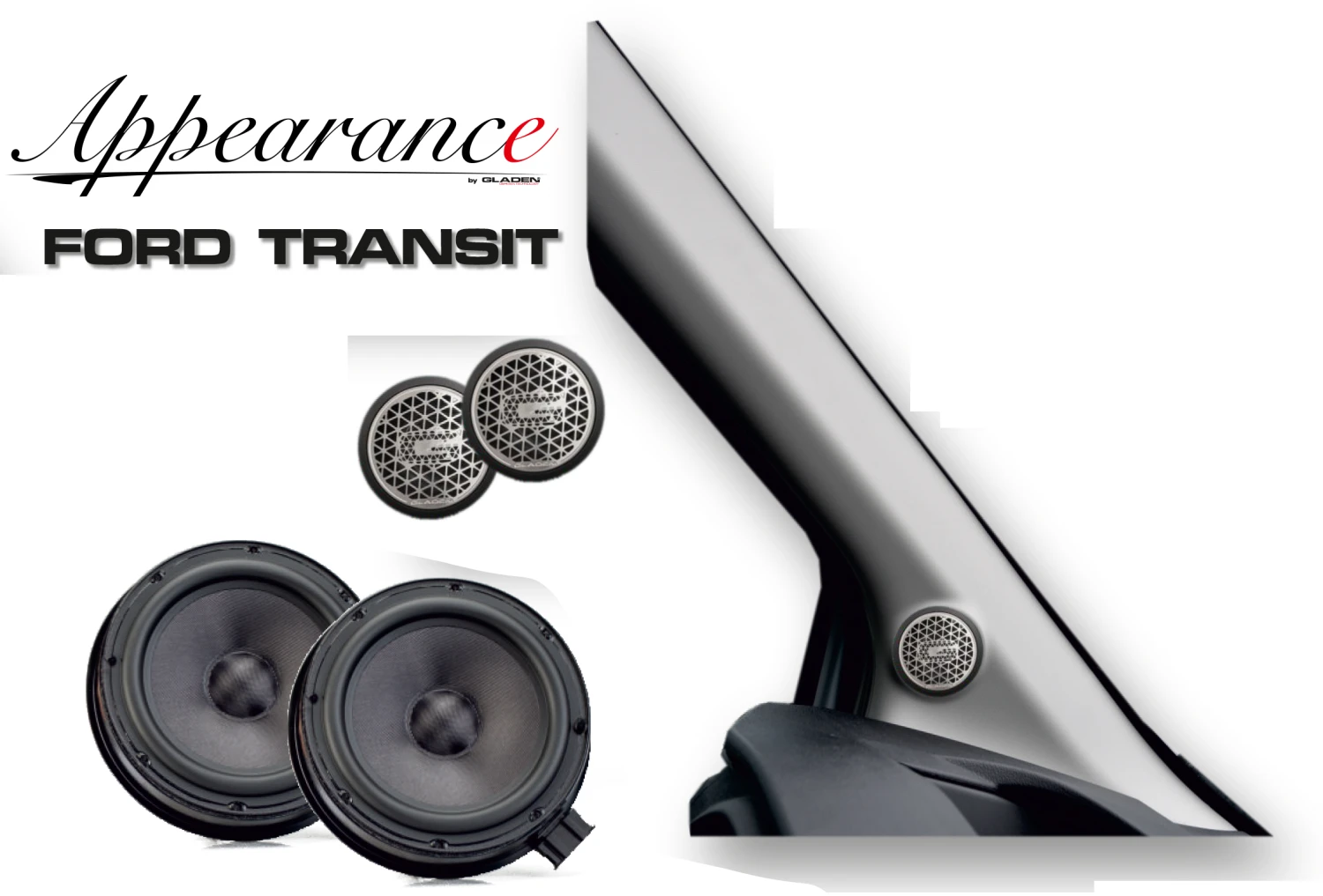 Das Gladen ONE-TRANSIT-Appearance ist für all die Musikliebhaber bestimmt, die perfekten Sound mit einer hochwertigen Optik im Fahrzeug kombinieren möchten. Die einzelnen Lautsprecher sind speziell für den Betrieb im Ford Transit ausgelegt und werden mit fahrzeugspezifischen Adaptionen geliefert. Der Tieftöner für den Türeinbau erhält eine neu konstruierte Lautsprecher-Aufnahme, die für einen sicheren und stabilen Halt in der Türe sorgt. Für eine perfekte Ausrichtung und Schallabstrahlung sorgt die neue und speziell designte Appearance-Hochtonaufnahme mit Edelstahl-Gitter.