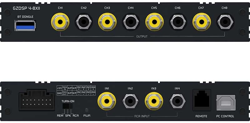 Digitaler Signalprozessor mit vier Hochpegel- oder Cincheingängen, USB Anschluss, Fernbedienung und Auto-on Funktion