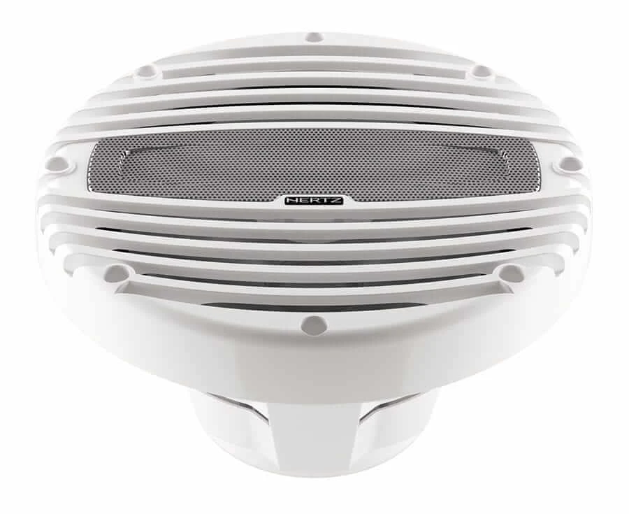 20cm High Performance Marine Koaxial Lautsprecher mit Spritzwasserschutz. Die Lautsprecher sind mit einem hochwertigen Gitter versehen und optimiert auf eine breitbandige Wiedergabe im Freien/Outdoor