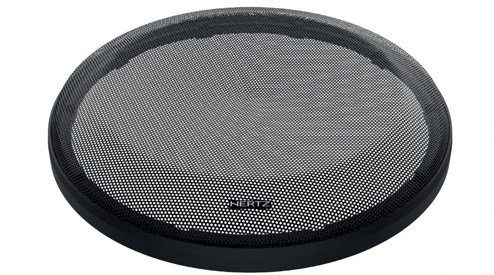 - 2. Robuste Metallstruktur, bestehend aus einem massiven Aluminiumgussring und einem schwarzen Gitter aus Stahlgeflecht mit einem diamantgeschliffenen Hertz-Logo