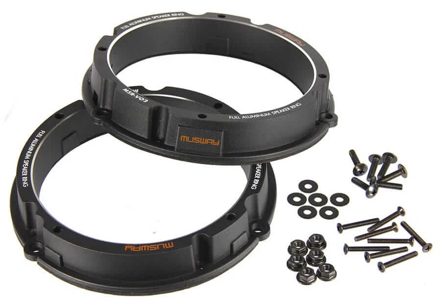 Die MUSWAY Adapterringe überzeugen schon beim Auspacken mit hoher Anfassqualität, denn das satte Gewicht der aus vollem Aluminium gefertigten Einbauringe liegt extrem gut und schwer in der Hand. Auf der Unterseite befindet sich ein rundum aufgeklebter Schaumstoffring, der eine optimale Dichtung zwischen Adapterring und Fahrzeugblech bietet. Genial: Unter der Dichtung wurden im Alu-Adapterring massive Messingmuttern eingearbeitet. Diese bieten den mitgelieferten M4 Gewindeschrauben perfekten Halt für den zu montierenden Lautsprecher. Kombiniert man die MSR Adapterringe zusätzlich mit den MSB165 Silikon-Manschetten, sind ideale „Arbeitsbedingungen“ für die Lautsprecher geschaffen. Dem audiophilen Klanggenuss steht nichts mehr im Wege.