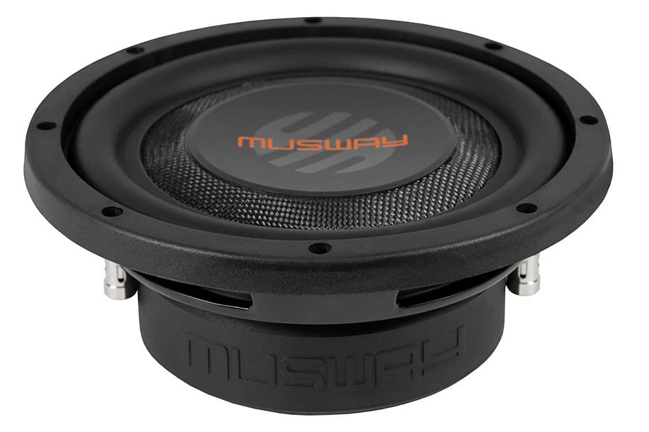 Ein besonders flacher Subwoofer sollte natürlich auch gut klingen und muss robust sein. Daher setzt Musway in den MWS-Modellen spezielle und sehr harte Membranen aus den Verbundstoffen Glasfaser und Karbon ein. Auch an den Antrieben wurde nicht gespart: Die Woofer haben 40 bzw. 45 Unzen schwere Magnete und werden von 5 cm großen 2+2 Ohm Doppelschwingspulen angetrieben, die überdies sehr lang gewickelt sind. Mit Xmax-Werten von +/-1,5 cm sorgen beide Tieftöner für ordentlich Hub. Mit 250 bzw. 300 Watt RMS sind sie zudem sehr hoch belastbar, so dass auch in dieser Disziplin keinerlei Abstriche gemacht werden müssen.